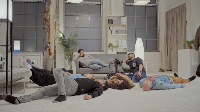 这件双频道影像装置是展览的核心,灵感来自Jacques Rancière的著作《劳动之夜》。Witt邀请参与者在柏林一座前工业厂房中共同做梦,镜头捕捉他们沉浸于未来想象的瞬间。作品展现了梦想作为个人与集体经验的力量,并反思在后工业社会中想象未来的空间。