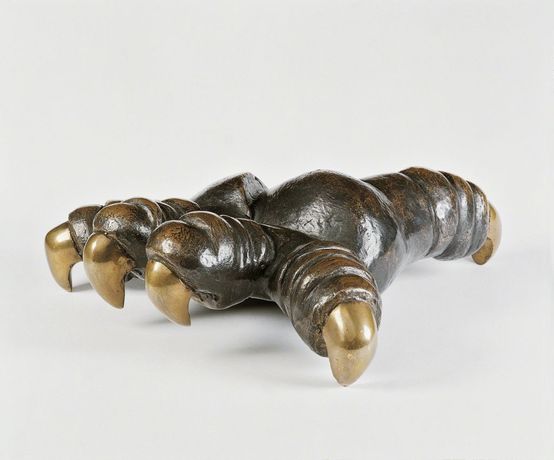 这件青铜雕塑形似猛禽的爪子,既像鹰也似神话中的狮鹫,象征着“给予与索取”之间的张力。作品以动物形象隐喻人性复杂的情感与权力关系,呼应展览对人类与自然、生命循环的深刻探讨。