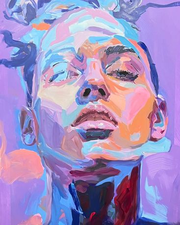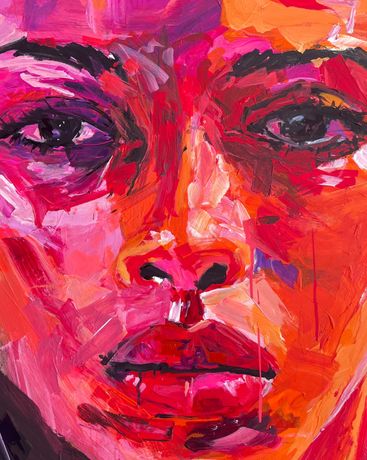 这幅表现主义肖像以强烈的粉色和蓝绿色调,捕捉人物内心的复杂情绪。画面中粗犷的笔触与丰富的色彩层次,展现了艺术家对情感瞬间的敏锐捕捉,也是本次展览色彩主题的代表作。