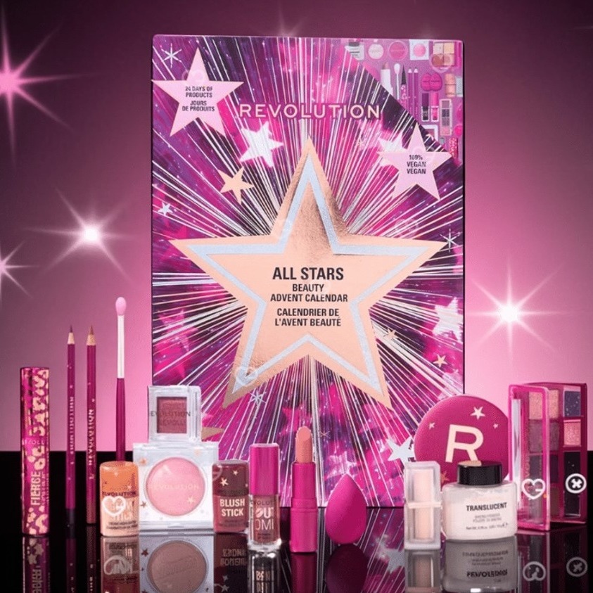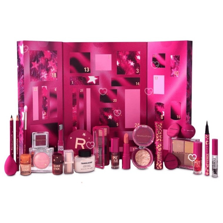 Revolution Beauty 2025圣诞倒数日历今年一亮相就让人眼前一亮!紫粉色的包装配上星光点缀,整个冬天都被它点亮了,每天拆开一扇门都像在过小型美妆派对。24个格子里藏着唇部、眼部、面部和彩妆工具的各种宝藏单品,还有独家新品和经典热卖款,满足你对美妆的全部幻想!