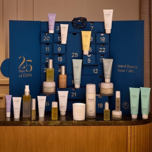 ESPA 2025圣诞日历是那种把豪华水疗感藏在日历里的礼物,让你每天拆一扇门都像在给自己一个小型Spa时刻。这款日历共有25扇门,包装是标志性的宝石蓝礼盒,触感高雅,还有压纹logo,拆礼物又有仪式感。里面藏着7件正装产品,比如 Restful Bath Milk、Overnight Hydration Therapy面膜、Clarifying Clay Mineral Mask和Optimal Hair Pro-Shampoo等,再加上一些deluxe小样、身体护理品、香薰、唇部护理等。还有一个Winter Spice香氛烛台,敲有节日氛围!