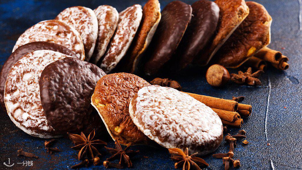 姜饼,一种胡椒、肉桂味的饼状糕点。上面一般会有巧克力的封层,中间是胡椒肉桂味软蛋糕的口感,下面会有一个软威化脆皮的底。没吃过的宝宝可以尝试一下,挺神奇的口感。同样圣诞节的传统食物,圣诞节前超市才会售卖。