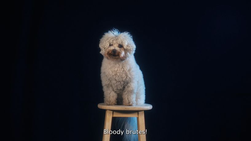 这部20分钟的单频道4K影像以一只会说话的宠物狗Whoopsie为主角,通过黑色幽默和超现实场景,讽刺英国社会对外来者的偏见。影片中Whoopsie自诩为“G-O-D”,在玩具火车世界中操控一切,面对外来威胁时陷入荒诞噩梦。作品以英式讽刺风格,揭示家庭、归属与排斥的复杂心理。