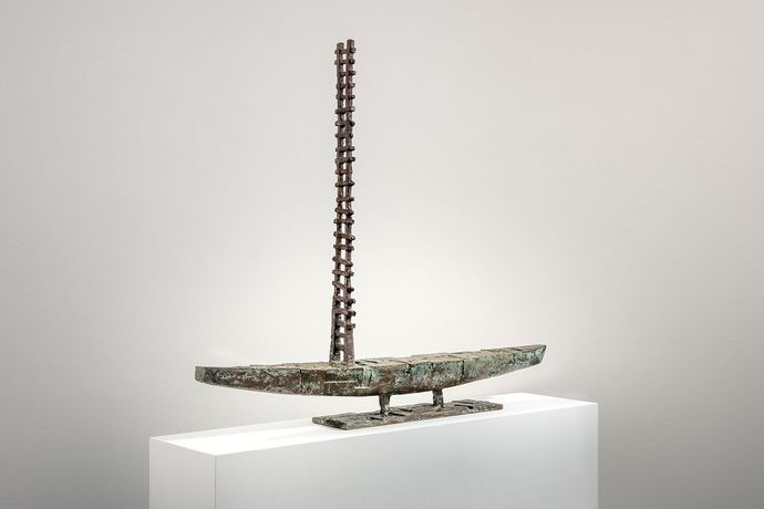 「Here Today, Gone Tomorrow」是一场聚焦时间与空间流转的双人展,汇集了雕塑家Michael Jastram与摄影师Michael Dressel的最新力作。两位艺术家自1970年代末在柏林艺术学院结缘,经历了柏林统一与各自人生的变迁后,于2016年再次携手创作。本次展览通过Jastram的青铜雕塑与Dressel在北美沙漠拍摄的摄影作品,展现了对时间流逝与存在意义的深刻思考。Jastram的雕塑以船、月亮、骑士等意象,唤起人类迁徙与自省的永恒主题;Dressel的摄影则以荒凉的沙漠遗迹,映照人类存在的脆弱与瞬息。两种媒介在各自独立的艺术语言中,彼此呼应,共同营造出静谧而诗意的氛围。