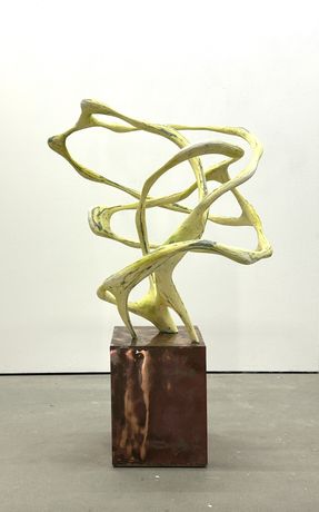 Flad的这件雕塑作品以木材、纸浆和颜料为材料,尺寸达170×100×110cm。作品呈现出仿佛在生长、蜕变中的有机形态,捕捉了运动与静止的临界点,呼应展览对“时间凝固”与“感知错觉”的探讨。