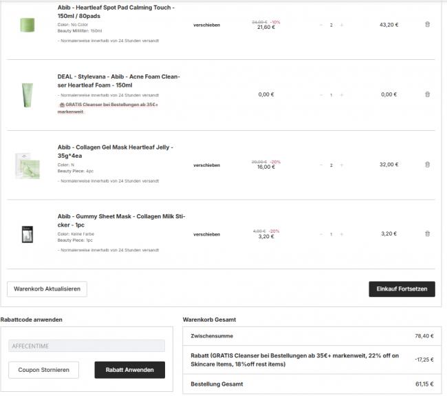 💥Stylevana家👍Abib全场62折起➕送洁面150ml😍单片面膜低至2€👍速来囤货!