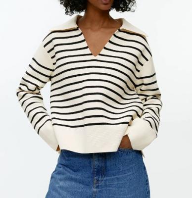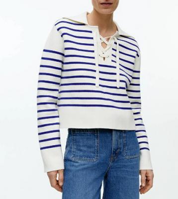 🧶 条纹翻领针织|吴千语乔欣同款针织,永恒的条纹元素在不同风格的品牌下展现出不同的风格,Arket的条纹针织,十分随性舒适,V领的设计更加拉长脖子,避免臃肿!