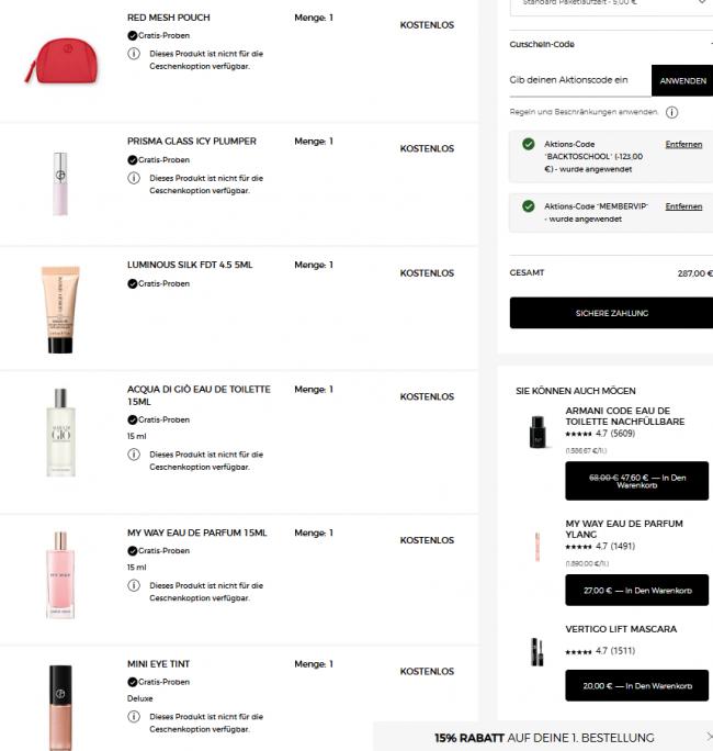 2️⃣ 先输入折后满90€送礼码:MEMBERVIP