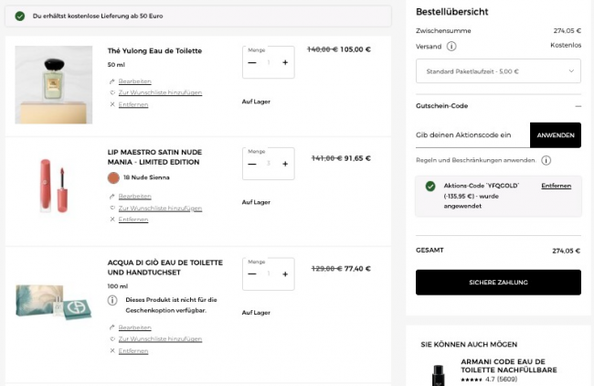 满100€送30ml随身香+化妆包