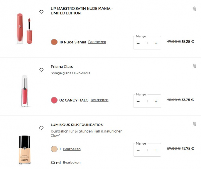 Armani官网彩妆全场>>全场满50€独家75折➕好礼6件含30ml香香!