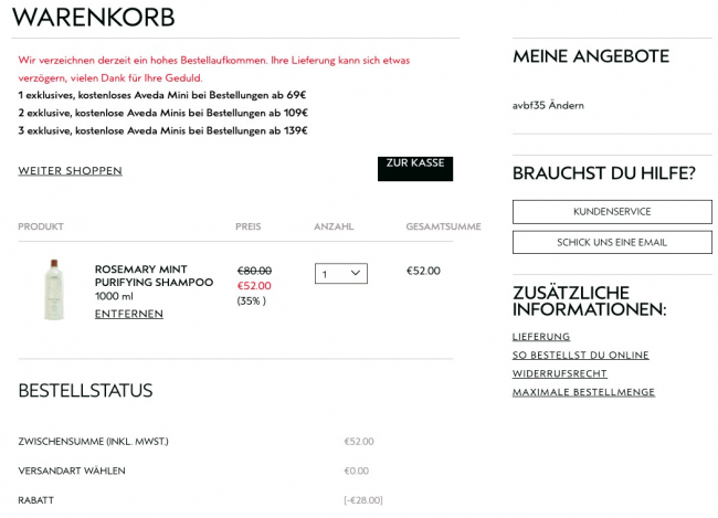 🛍Aveda官网无门槛独家65折👊油头挚爱1000ml迷迭香薄荷洗发水52€🍃超舒服气垫木梳25€