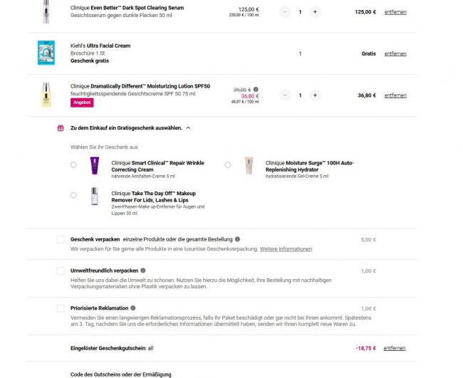 🎁 满50€送好礼三选一(最划算的是眼唇卸妆液30ml)