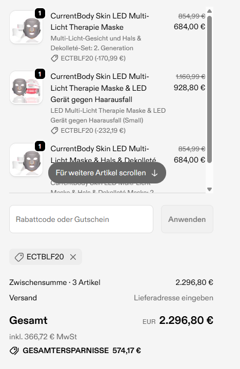 👉🏻 新品多维面膜仪➕美颈仪套组 >>套组更划算!总价值950€;折后684€!变相72折!