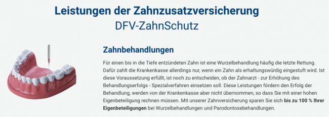 在申请保险之前已完成的牙齿治疗服务已包括在保险范围内,例如,DFV-ZahnSchutz 涵盖了对现有牙冠或牙齿填充的修复。 此外,对所有麻醉服务(消除疼痛的措施)均未设置上限,并且无论你的费用如何,在治疗发生后都能获得100%的费用报销。