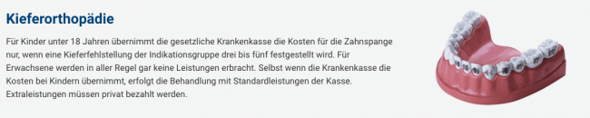 当然,报销额度不仅与报销比例相关,投保的前四年还有年度最高报销限制。不同的牙科项目报销额度有所不同。以花费最高的牙齿正畸(矫正)项目为例,第一年的报销额度分别为:Basis 675 €、Komfort 1 225 €、Premium 1 400 € 和 Exklusiv 1 750 €。此后每年报销上限会逐步提高。四年以后,报销金额按实际比例支付,不再设年度上限。