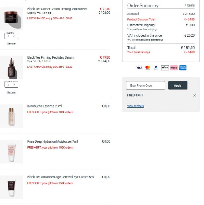 👉 满150€送15ml大豆洁面➕7ml玫瑰保湿面霜➕20ml红茶水➕7ml红茶面霜➕5ml红茶眼霜!价值62€!