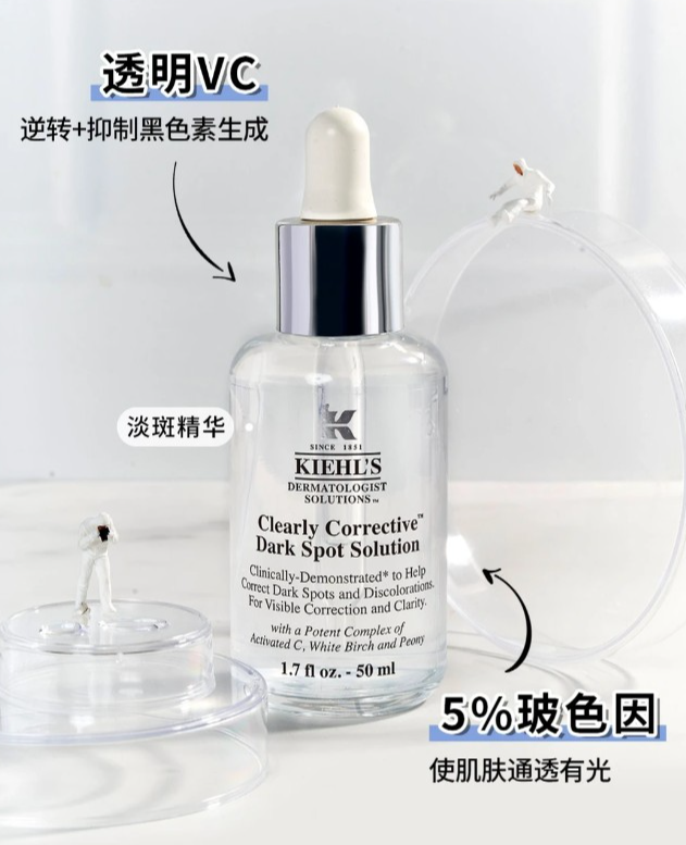 「科颜氏淡斑精华」添加稳定不感光的透明VC,与玻色因携手修护肌底,对抗光老化损伤!