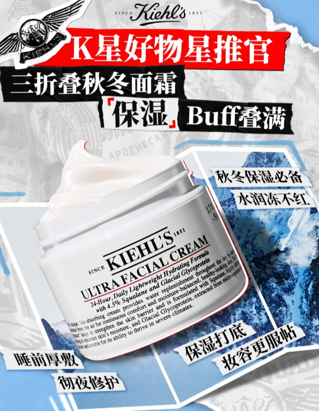 💧深层抓水补水:科颜氏经典保湿成分「冰川保护蛋白」,减少水分流失,锁水实力一流👌!注入满格水能量,开启肌肤水循环🔃!