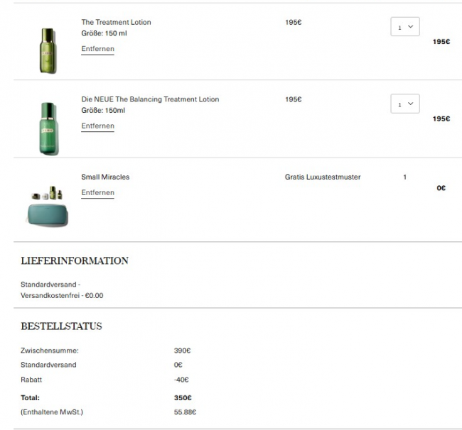 包含:紧塑刀精华3ml(41€)、柔酸油5ml(48€)、奇迹面霜3.5ml(27€)、奇迹晚霜3.5ml(28€)等!