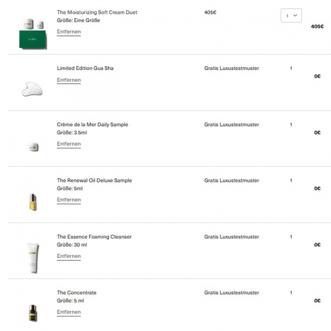 包含:紧塑刀精华3ml(41€)、柔酸油5ml(48€)、奇迹面霜3.5ml(27€)、奇迹晚霜3.5ml(28€)等!