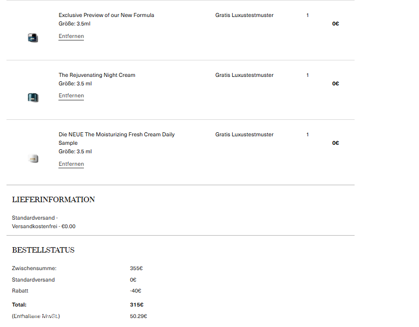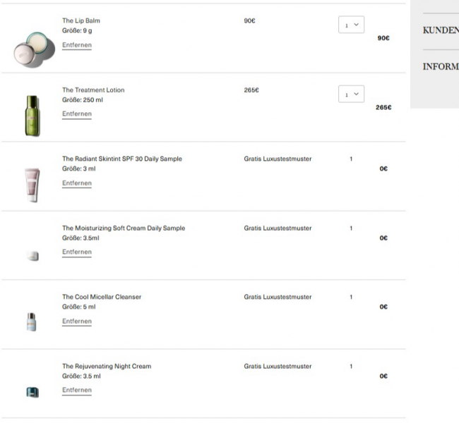 包含:紧塑刀精华3ml(41€)、柔酸油5ml(48€)、奇迹面霜3.5ml(27€)、奇迹晚霜3.5ml(28€)等!