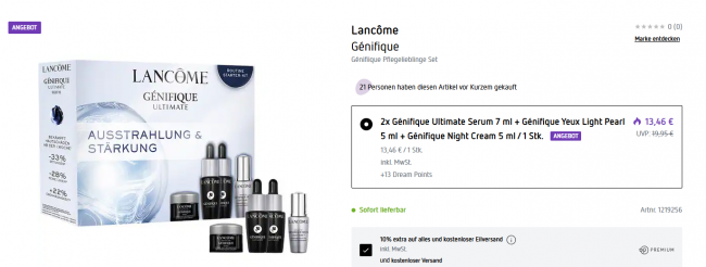 内含:14ml超修小黑瓶(43€)+5ml小黑瓶眼精华(19€)+5ml发光眼霜(20€)
