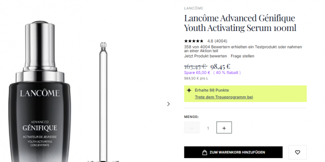 LF家老是骨折价!旧版小黑瓶精华100ml >>竟然自带6折!98€收100ml!不到1€/ml的神价!