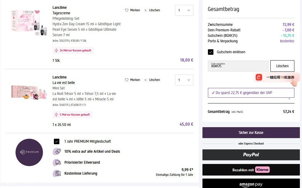 只要9.99€,全年都可以享受折上9折+满20€包邮!最值得买的会员没有之一!