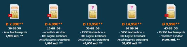 📱 德国 Logitel 无手机合约 SIM 卡合集|5G 大流量低至 4.99€,返现转网更划算!