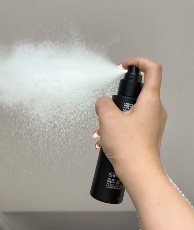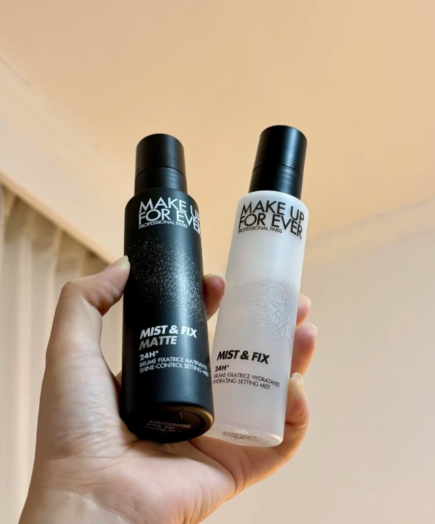 全妆完成后 → 最后喷黑瓶定妆(只喷T区或全脸)
