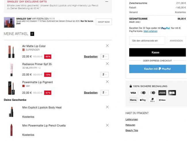 炸裂!NARS折扣专区直达 >> 全场11€!满49€即可享受!