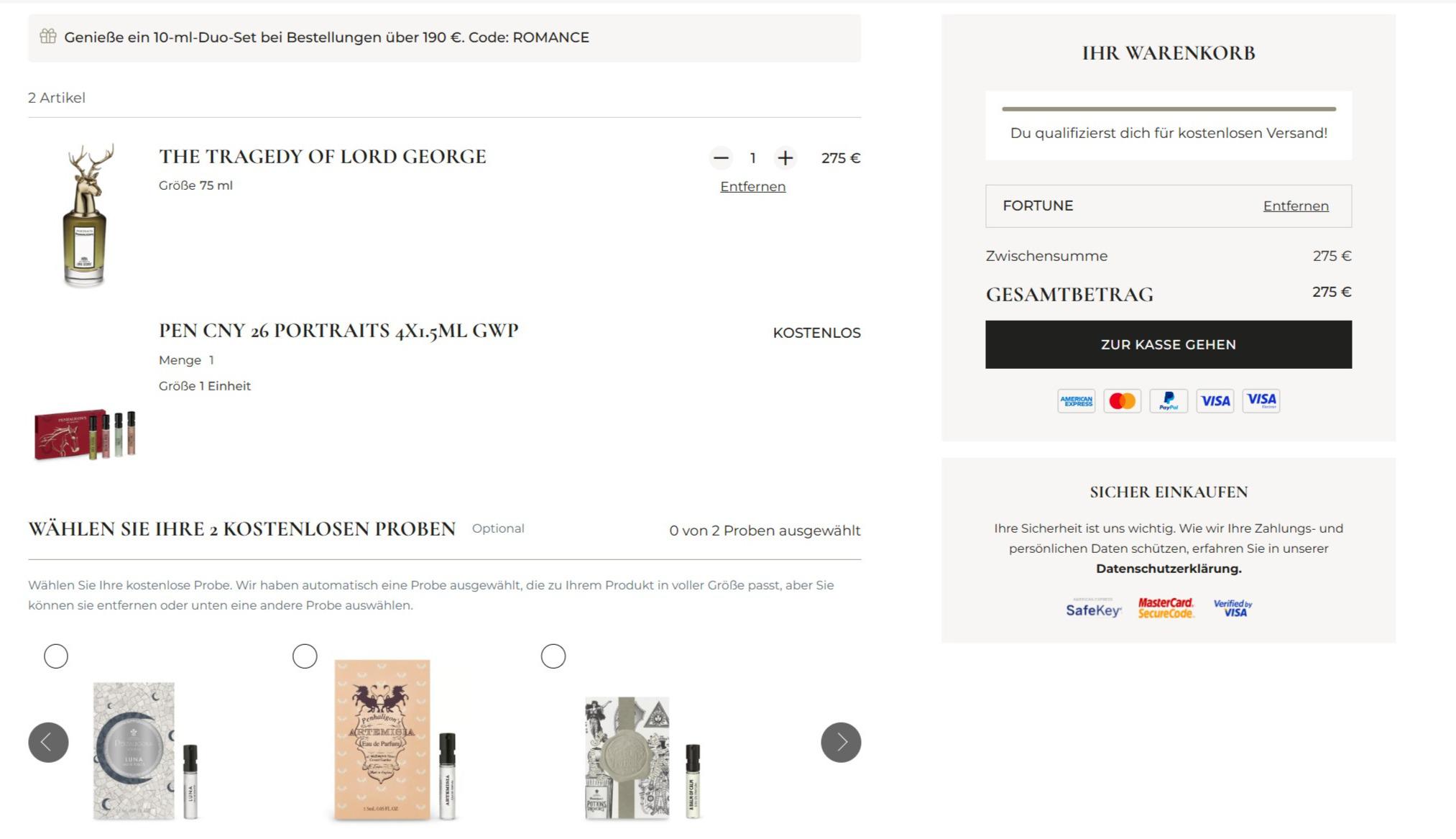 全场满190€送2*10ml试管香码:ROMANCE