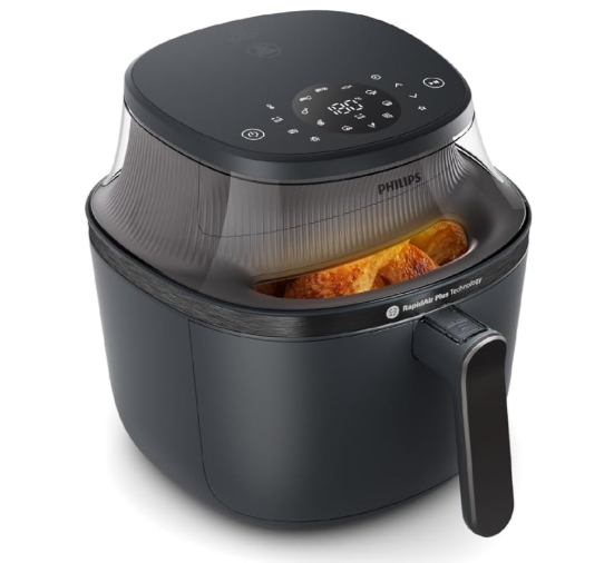 RAPIDAIR PLUS技术超厉害,用星形设计的循环热风,能减少高达 90% 的脂肪,吃起来酥脆又不油腻!