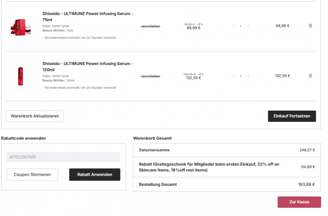 登录会员账号无门槛折上82折;满69€精选护肤折上78折!游客无门槛折上9折!