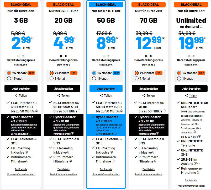 1个月50GB的套餐🔥仅需8.99€💥