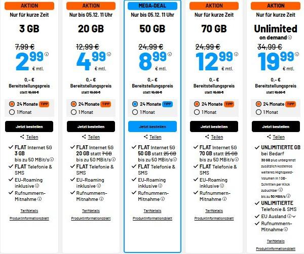 📱现有50GB套餐每月8.99€限时闪促!
