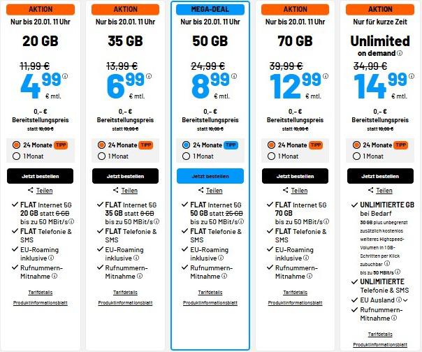 限时活动来袭,多档 5G 套餐集体降价,0€ 开卡费,部分套餐直接对半砍价,甚至还有 按需无限流量,性价比直接拉满👇