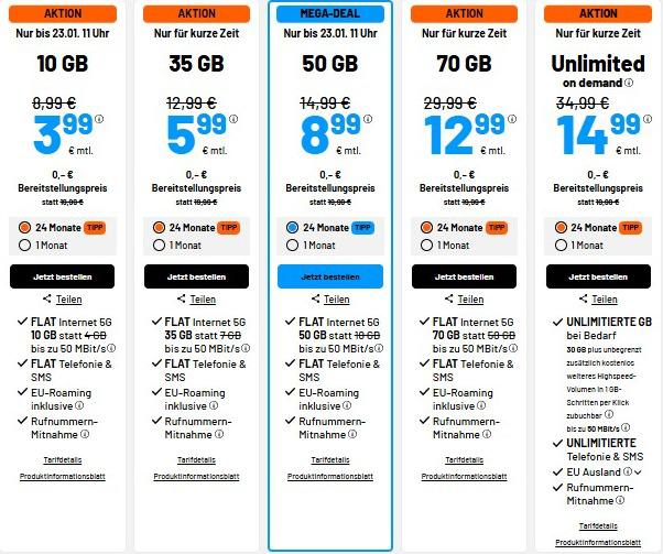 德国 5G Mobilfunk 套餐迎来超值限时促销,多档流量直接跳水,覆盖轻度用户到重度刷剧党,性价比直接拉满👇
