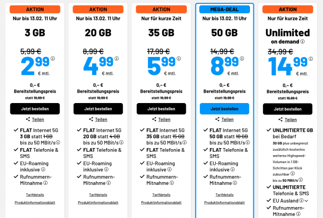 sim.de 推出多款 5G 手机套餐限时特惠,0€ 开卡费,无论轻度使用还是流量重度党,都能找到合适选择👇