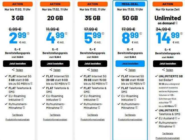 从 2.99€ 到 50GB 8.99€,