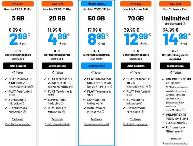 SIM de 5G 手机套餐限时 MEGA DEAL|50GB 仅 8.99€/月!