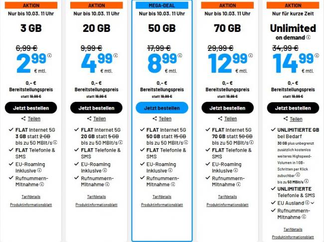📱 德国 SIM de 5G5G手机套餐限时促销,月费低至2.99€🎉