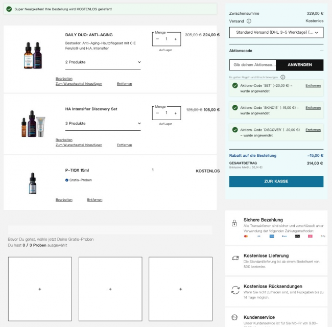 这3个发现套组与单品同价还送防晒15ml+精华4ml!还能再减35€!