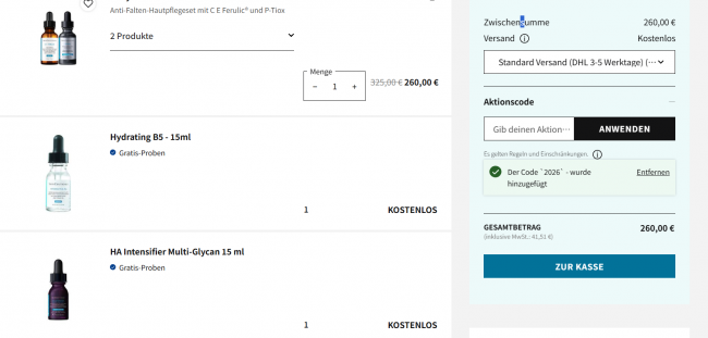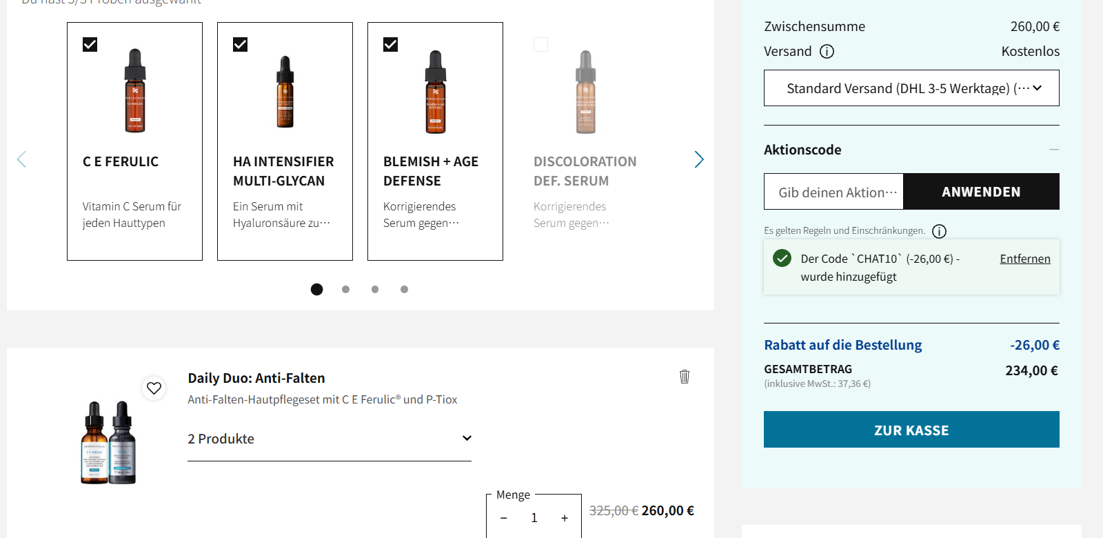 🎁 购物车还能再任选3个4ml精华试用装,共12ml,宝宝们选最贵的CF或CE精华最划算!4ml就价值24€啦!