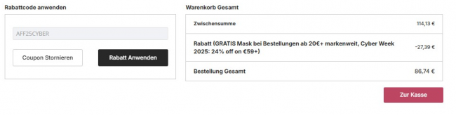 无门槛折上8折!满59€折上76折!折扣码:AFF25CYBER