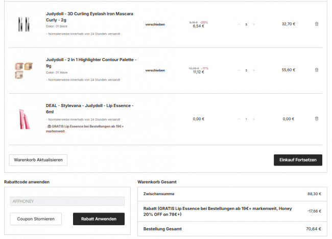 满78€折上8折!折扣码:AFFHONEY
