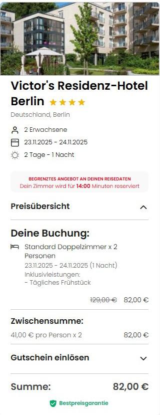 Travelcircus (DE) 现有 柏林四星酒店Victor's Residenz 仅82€/晚(含早餐)