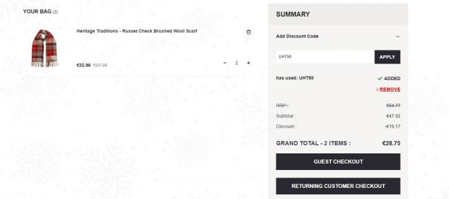 Unineed家Heritage>> 羊毛围巾专区低至87折+两件折上6折!低至13€!
