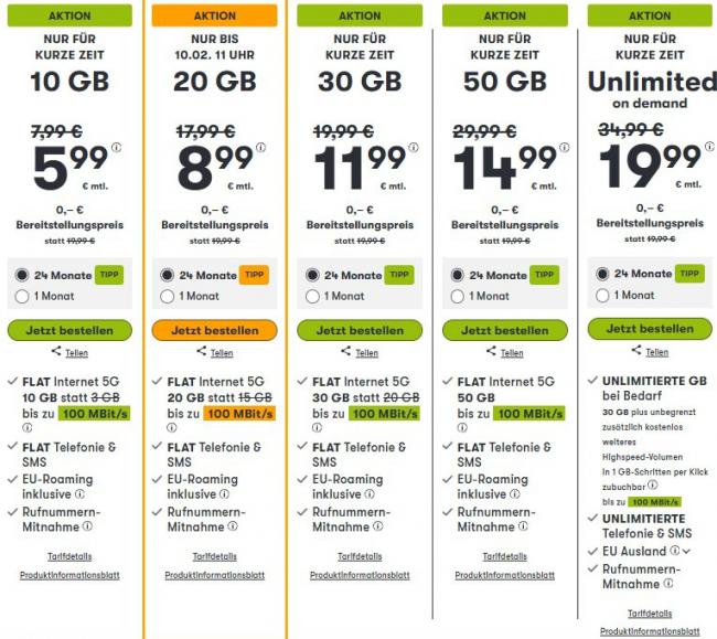 Winsim 多款 5G Mobilfunk-Tarife 正在限时促销,覆盖从轻度使用到无限流量需求,性价比非常能打👇