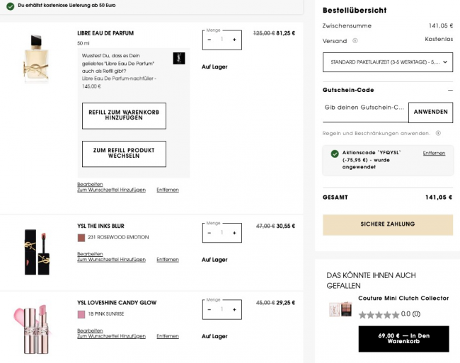 YSL官网>> 独家满70€全场65折+送9件大礼🎁